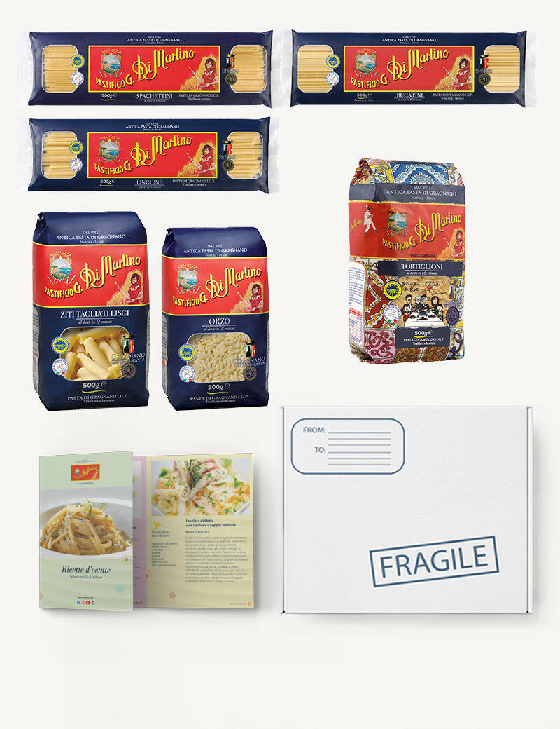 The new Summer Di Martino box is born, inside you can find all the I.G.P. pasta shapes that match perfectly with the typical ingredients of the summer season, but there's more! Inside the Box you will also find a recipe book with many ideas for your dishes